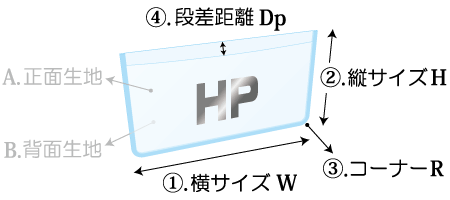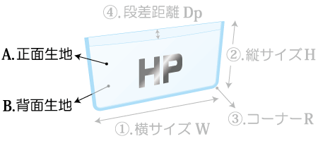 縦サイズとは、下図に示すように背面生地の上部からケースの溶着部を含むケース底端までの大きさを表します。(※灰色は溶着部:2mm)